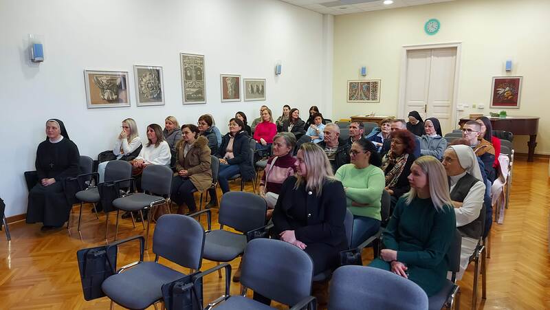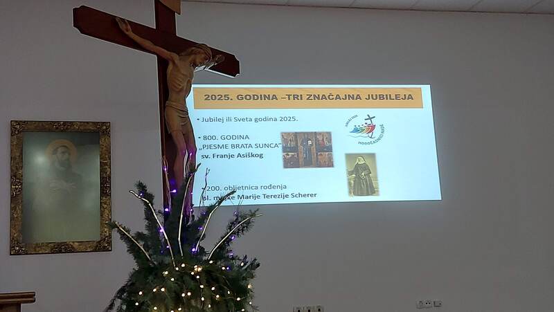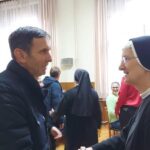 Provincijalno vodstvo Milosrdnih sestara svetoga Križa, na čelu sa s. Marijom Brizar, provincijalnom poglavaricom i zajedno sa s. Lovorkom Jukić, provincijalnom ekonomom, okupilo je djelatnike Samostana i Dječjeg vrtića „Sunčev Sjaj – Nazaret“ na tradicionalno božićno čestitanje, 23. prosinca 2025. godine, u Dvorani duhovnih vježbi, u provincijalnoj kući u Đakovu. Nagovor je održala s. Meri Gotovac na temu Anđeli naši svagdašnji.