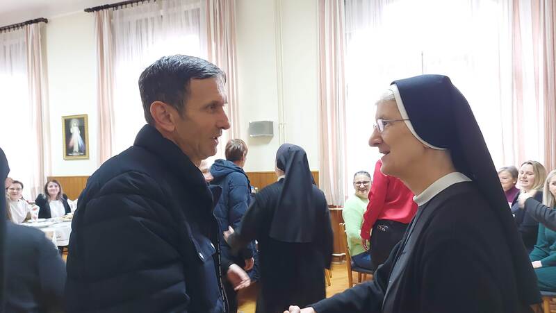 Nakon programa, djelatnici su se uputili u samostansko blagovalište gdje im se, uz prigodnu okrjepu, obratila s. Marija Brizar. Zahvalila je svima na suradnji te je svakomu osobno uputila božićnu čestitku i darovala prigodan poklon.