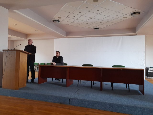 Nakon euharistijskog slavlja sudionici su se zaputili u Sinodsku dvoranu Središnje nadbiskupije i fakultetske knjižnice u Đakovu, gdje je uslijedilo predavanje vlč. Perića na temu „Kada vina ponestane“ na temelju evanđeoskog ulomka o Isusovu prvom čudu u Kani Galilejskoj. „Svatovi u Isusovo vrijeme dugo su trajali. Čak sedam dana. U takvim slučajevima može doći do krize kao i u svačijem životu. Zato je pitanje što s krizom činiti i što od nje dobiti. Kriza je šansa, mogućnost da se popravimo. O nama ovisi što će se iz krize izroditi“, rekao je vlč. Perić i ispričao priču o baki i unuci koja upada u krize te je povukao paralelu s izabranim Evanđeljem koje govori o krizi koja je zadesila mladence. Treći dan je ponestalo vina. Za ne vjerovati, ali to je kriza na socijalnom, emocionalnom, ekonomskom, obiteljskom, relacijskom planu. Treba zapamtiti, rekao je vlč. Perić, da sa živim Bogom, Isusom Kristom, može se krizu preokrenuti u transformirajući, preobražavajući događaj.