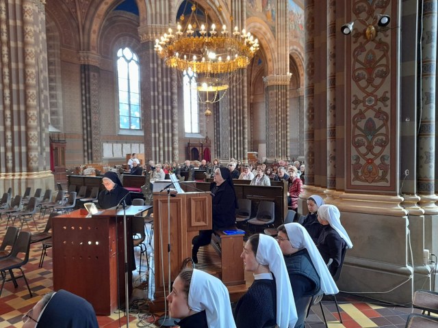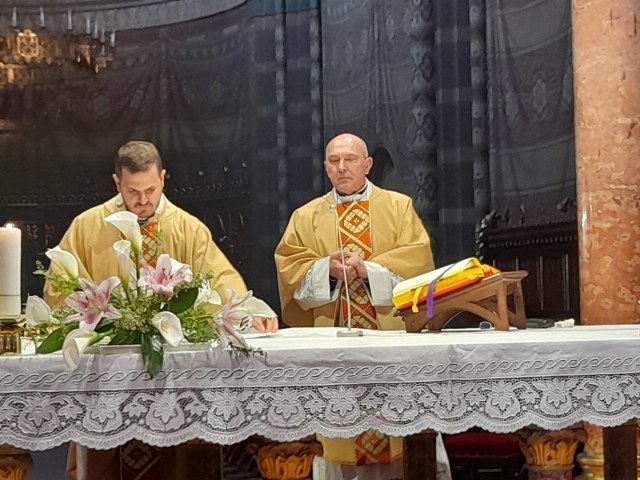 Uslijedila je misa koju je predslavio vlč. Kovaček u koncelebraciji s vlč. Matejom Perić, novim članom Povjerenstva. Svojom pjesmom i sviranjem animirale su ga novakinje na čelu sa s. Svjetlanom Paljušević. U svojoj homiliji vlč. Kovaček naglasio je zabrinutost za aktualne događaje vezane za pandemiju i rat u Ukrajini koji za posljedicu imaju lišavanje života velikoga broja ljudi, no, naglasio je – „uvijek po vjeri u Uskrsloga i nadom u Život – pobjeđujemo smrt“.