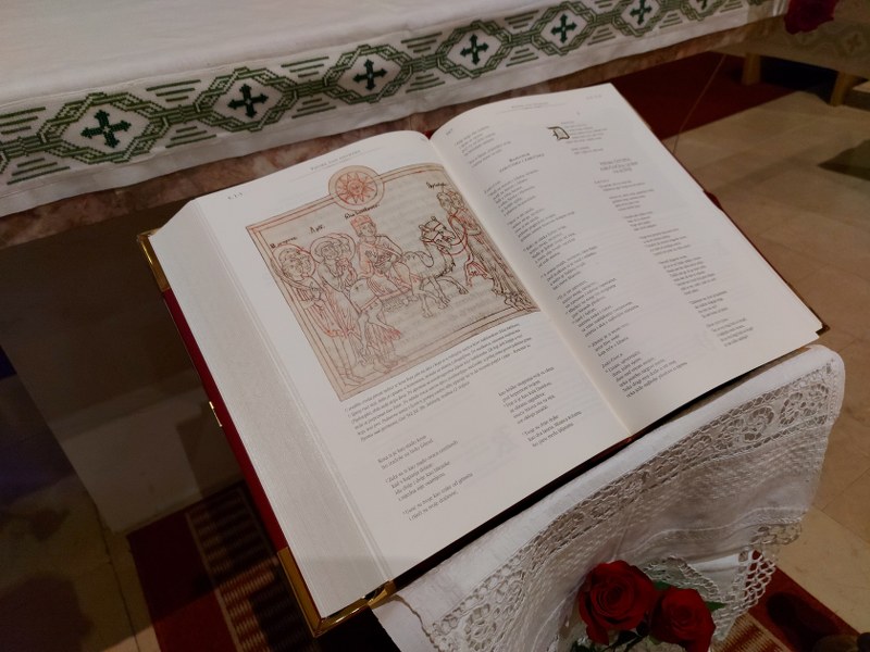 Promatrajmo u šutnji Sveto Pismo pred nama. Posvijestimo si kako je u Bibliji pohranjena živa Božja Riječ. U tišini srca s vjerom se klanjajmo toj prisutnosti Božjoj…