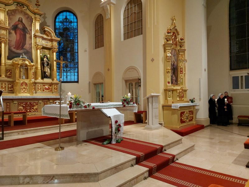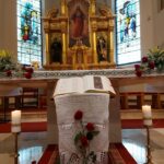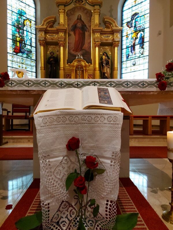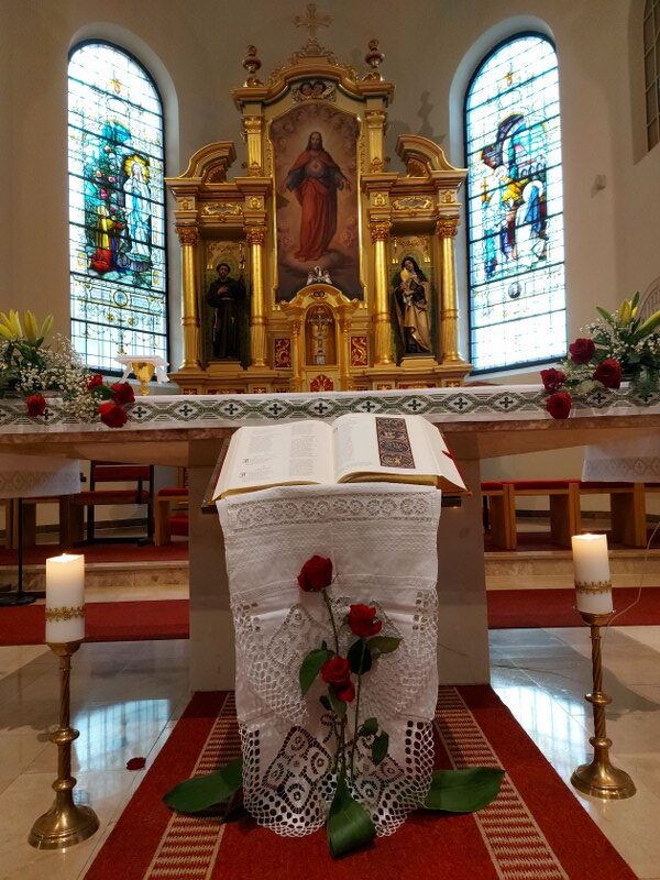 Uz pratnju orgulja, nosi se Biblija i dvije svijeće, koje se postavljaju pred oltar.