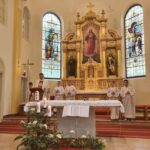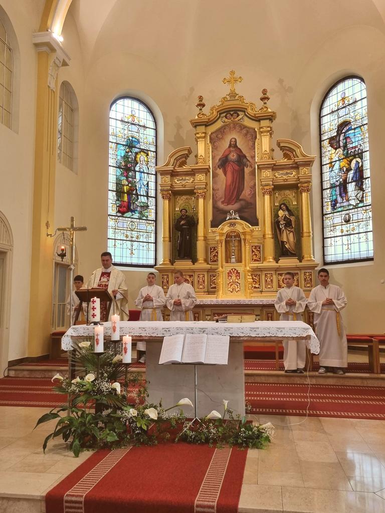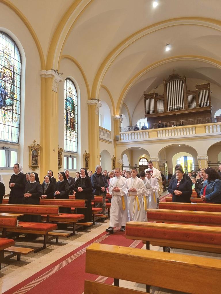 Članovi župnih čitača čitali su riječ Božju i Molitvu vjernika, a župnik je u homiliji na zanimljiv i poticajan način spajao riječ Božju sa svetim životom bl. majke Marije Terezije Scherer. Posvijestio je svima prisutnima da smo mi hodočasnici na putu, kao učenici iz Emausa i s nama je uskrsli Gospodin koji se zanima za našu trenutnu stvarnost. Na tom putu “Treba se većma pokoravati Bogu nego ljudima.“ Upravo to je činila bl. majka M. Terezija. I njezin život bio je pun poteškoća, nerazumijevanja i odgovornosti, ali je živjela u svijesti i govorila sestrama, pa i danas nama: „Nikada ne očajavam: naš Otac živi na nebu.“ To nije pobožna rečenica – to je iskustvo. To je vjera koja je prošla kroz kušnju i ostala čvrsta. Ona je živjela vjeru u malim stvarima i zato je mogla reći: „Činite iz dana u dan koliko vam sile dopuštaju.“  To je put i za nas. I još jednostavnije: „Činiti dobro i zaboraviti sebe.“ To je Evanđelje u praksi. Jer, „S Bogom i za Boga može se mnogo.“