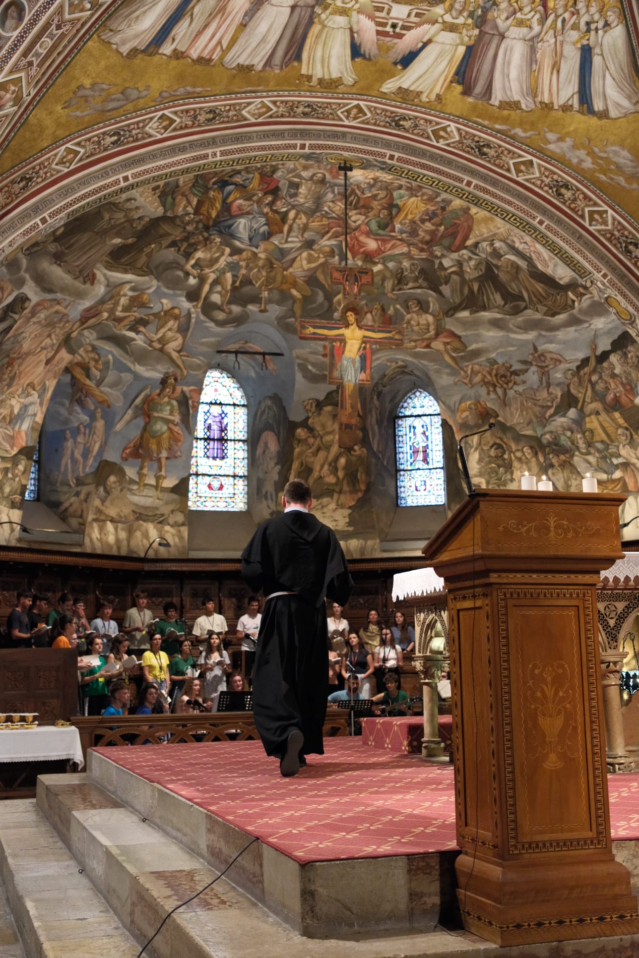 Mladi prema Asizu međunarodni je susret koji okuplja mlade iz župa franjevaca konventualaca pa smo se ovom događaju priključile na poziv fra Zvonimira Pervana (OFM Conv) i fra Andrije Ćorluke (OFM Conv) koji su polazak za mlade iz Hrvatske organizirali pod okriljem Centra za zvanja Hrvatske provincije sv. Jeronima franjevaca konventualaca.