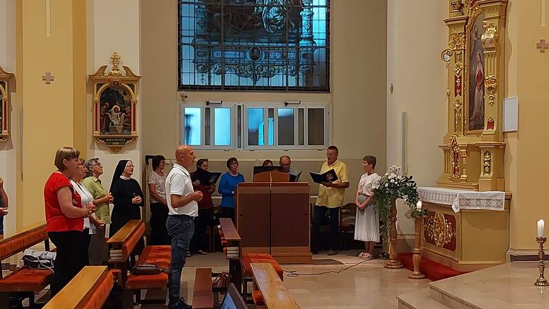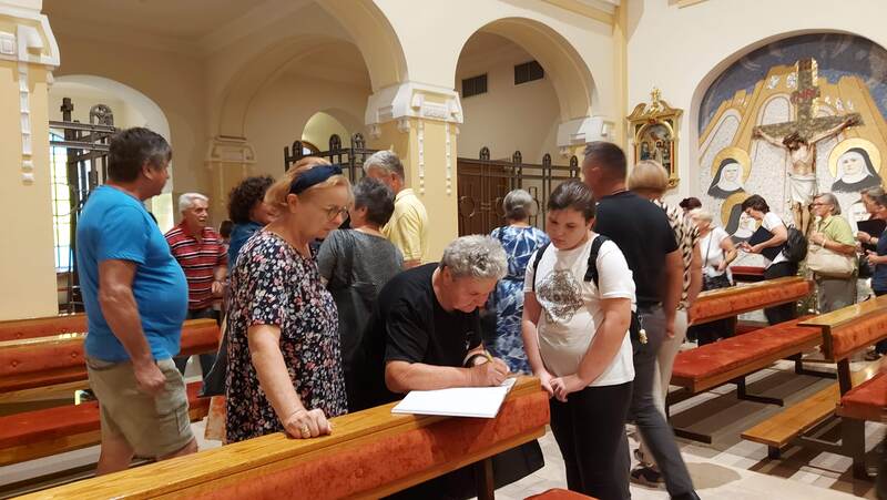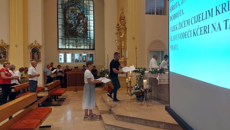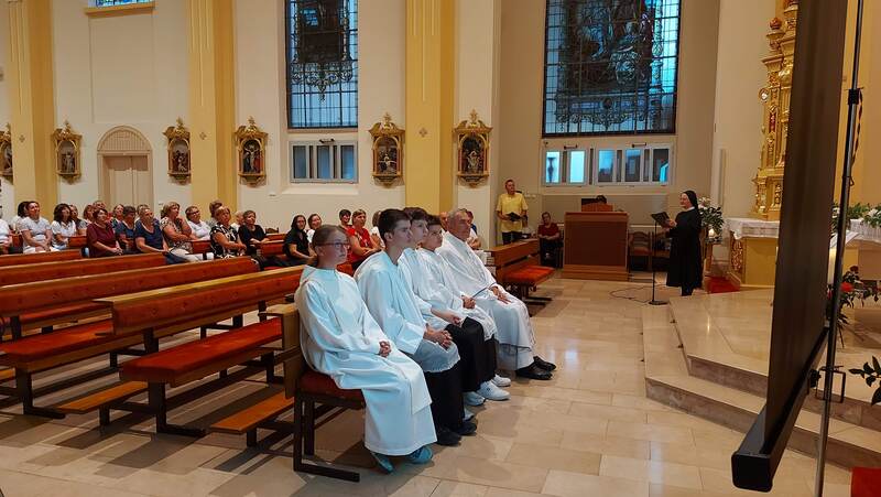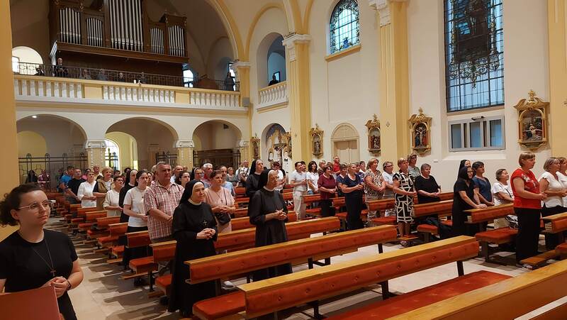 Pod zaštitom Nebeske Majke, čiju su svetkovinu jučer proslavili vjernici župe Rođenja Blažene Djevice Marije svojoj župi, u Podravskoj Moslavini i u raznim Marijanskim svetištima diljem Lijepe naše, danas, 16. kolovoza 2025. hodočastili su u Đakovo, u crkvu Presvetog Srca Isusova, blaženoj majci Mariji Tereziji Scherer. Došlo ih je preko pedeset, što autobusom, što osobnim automobilima, u organizaciji svoga župnika mons. Vladimira Škrinjarića.