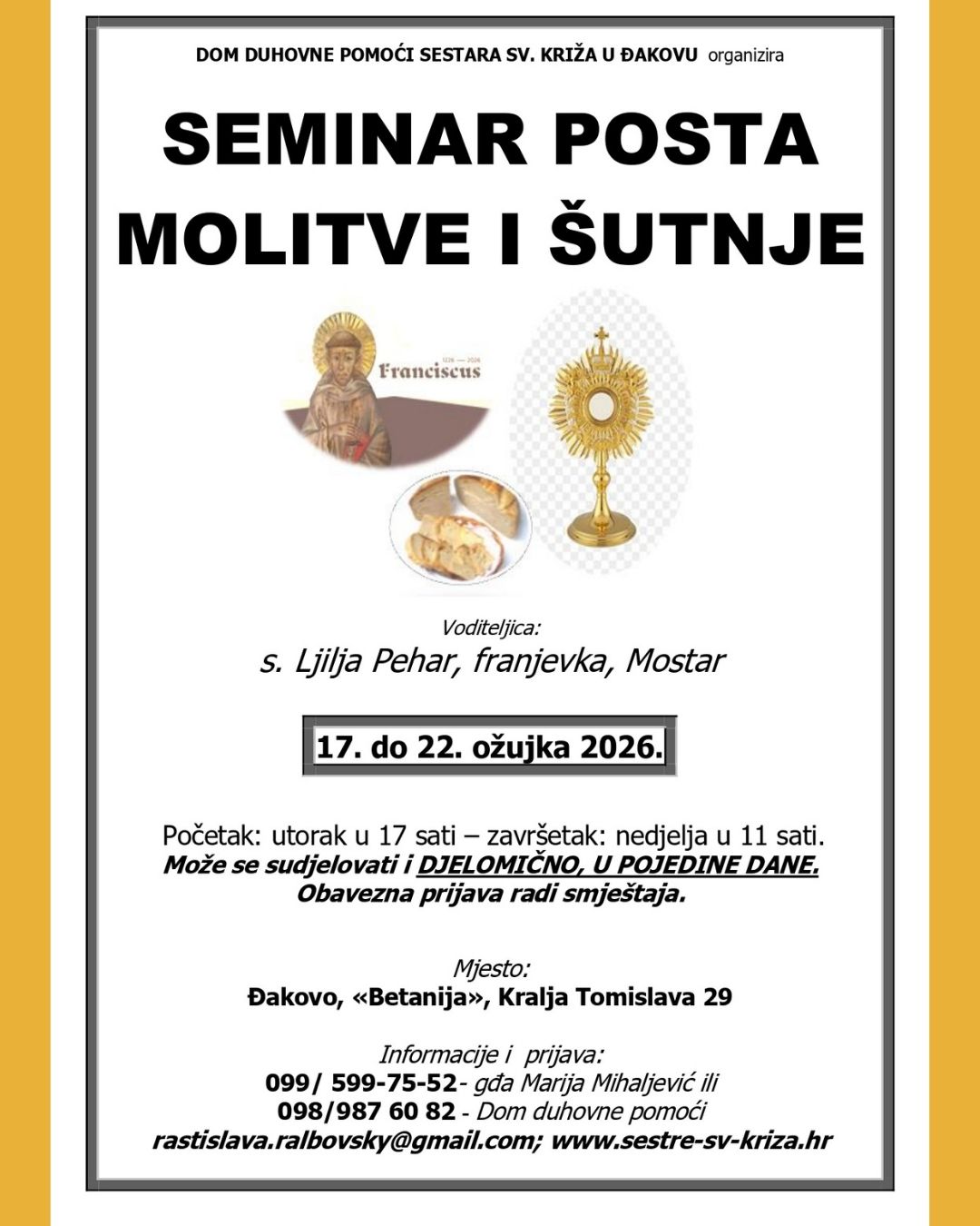 Možete dogovoriti termin: s. Gabrijela Tea Damjanović mob. 099 401 53 99